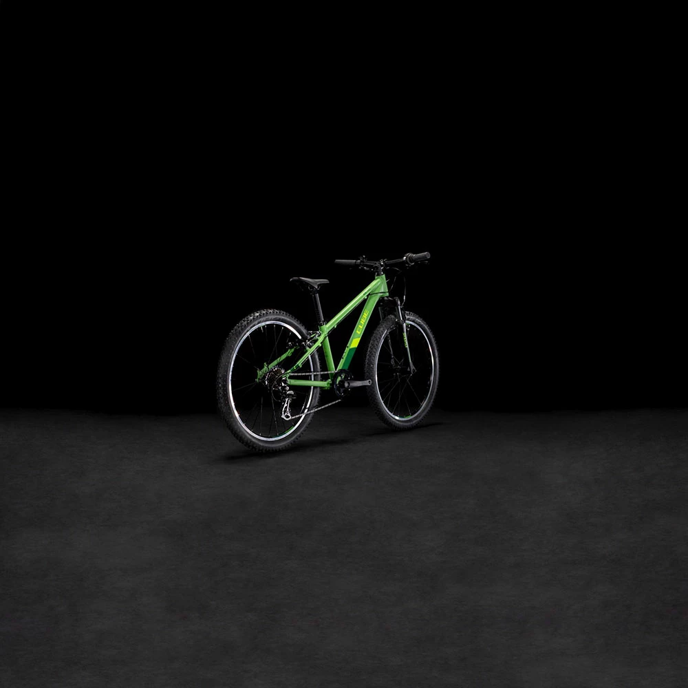 Built from the same heat-treated 6061 aluminium tubes as the adult bikes, the Acid 240’s frame is every bit as tough as a full-size mountain bike, but with the right weight and proportions for a child. There’s a bottle mount for mid-ride refreshment and rack mounts, too. The handling is designed to be both fun and confidence-inspiring. And, because CUBE knows accidents can happen, they made the gear hanger easily replaceable so that a knock or crash needn’t result in an expensive repair.