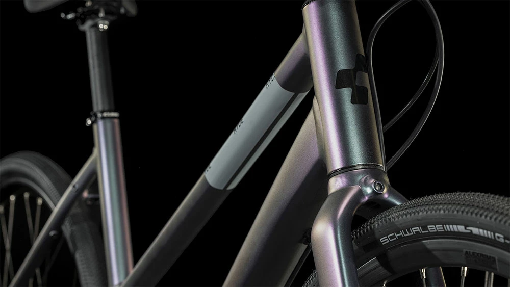 The ideal blend of mountain bike-inspired ruggedness with road bike-inspired pace, the CUBE Hyde Race Lady is an understated urban traffic-beater. Fast-rolling Schwalbe G-One Allround tyres work with the smooth, ultra-durable Gates CDX belt drive and Shimano Alfine 8-speed hub to get you where you need to be with the minimum of fuss.