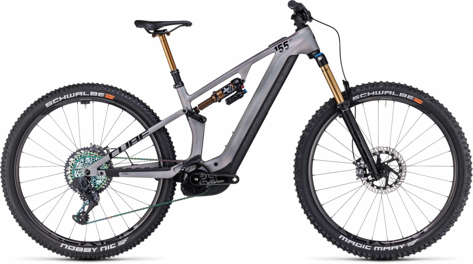 All-mountain riding just got a whole lot more exciting, and this bike is the reason. The Stereo Hybrid ONE55 C:68X SLT 750 29 is a game-changer, blending CUBE´s lightest-ever hybrid full-suspension intube frame with a progressive geometry for genuinely kick-ass alpine trail performance, both up and down. Sram’s wireless Eagle AXS XX1 Eagle 1×12 transmission works with Bosch’s fourth-generation CX drive unit and a 750Wh battery to deliver miles of mountain-taming pedalling and seamless, perfect shifts every time. Newmen Advanced carbon wheels shod with Schwalbe Nobby Nic 2.4in tyres are held in check by Magura’s powerful MT7 hydraulic discs and oversized rotors. And a Fox 36 Factory Grip2 fork, Float X Factory shock and remote dropper post all help ensure you’re in full control, no matter how rowdy things get.
