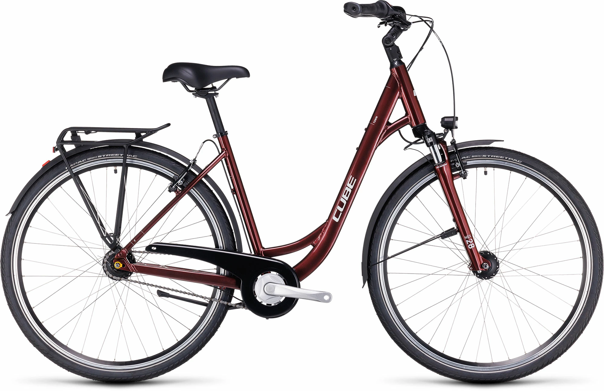 The heart of the Town is its high-quality, low-weight aluminium frame. Designed with the Efficient Comfort Geometry to make negotiating the urban jungle as easy as possible, it’ll surprise you with its nimble and assured handling. The Easy Entry version is sleek and easy to use, with the best-possible access for easy mounting and dismounting. Every frame features our exceptionally neat luggage carrier and cables routed inside the down tube, which keeps the looks svelte and ensures that your gears will keep shifting smoothly for longer. And, of course, they’ve remembered to leave space for water bottle mounts for those weekend excursions into the countryside. CUBE thinks they’ve thought of everything… so you can enjoy the ride.