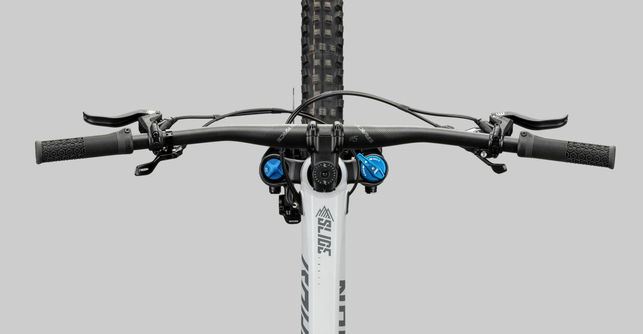 The Fox 36 Performance suspension fork with 150mm and the Fox Float DPS Performance shock with 140mm travel give you the performance you need to tackle any obstacle with elegance and ease. The Race Face Aeffect R stem and handlebar composition demonstrates the common thread that this trail bike follows. The SRAM drivetrain shines with its reliability. The combination of a 12-speed SRAM Eagle shifting group offers the perfect gearing to not only climb the mountains, but also keep up the speed on all trails! A Magura MT5 four-piston brake system front and rear rounds off the basic idea of a uniform interaction of the components, so that an absolutely coordinated functionality can be teased out. This perfection is just stunning! But the SLIDE TRAIL AL 8.0 goes one better! With the aggressive Magic Mary at the front and the supple Big Betty at the rear from Schwalbe, both with ADDIX Soft rubber compound and Supertrail casing, you always have endless grip and full control on the trail. The lightweight SUNringlé Düroc 35 Expert system wheelset rounds off the grandiose overall package. Unlimited riding fun with the SLIDE TRAIL AL 8.0!