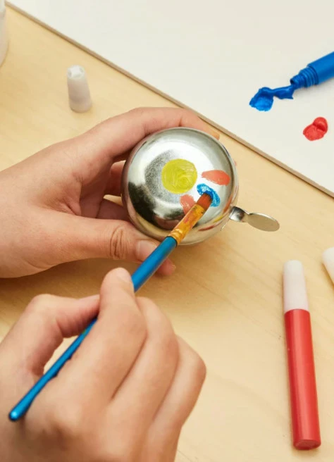 Contenu du pack : sonnette + peinture rouge, jeune et bleue + pinceau